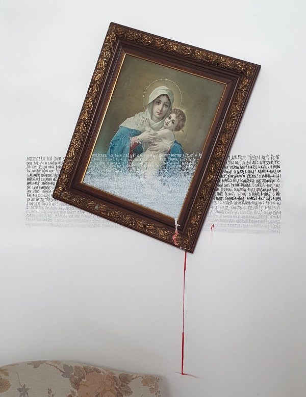 Ein klassisches Marienbild, aus der Achse gekippt.