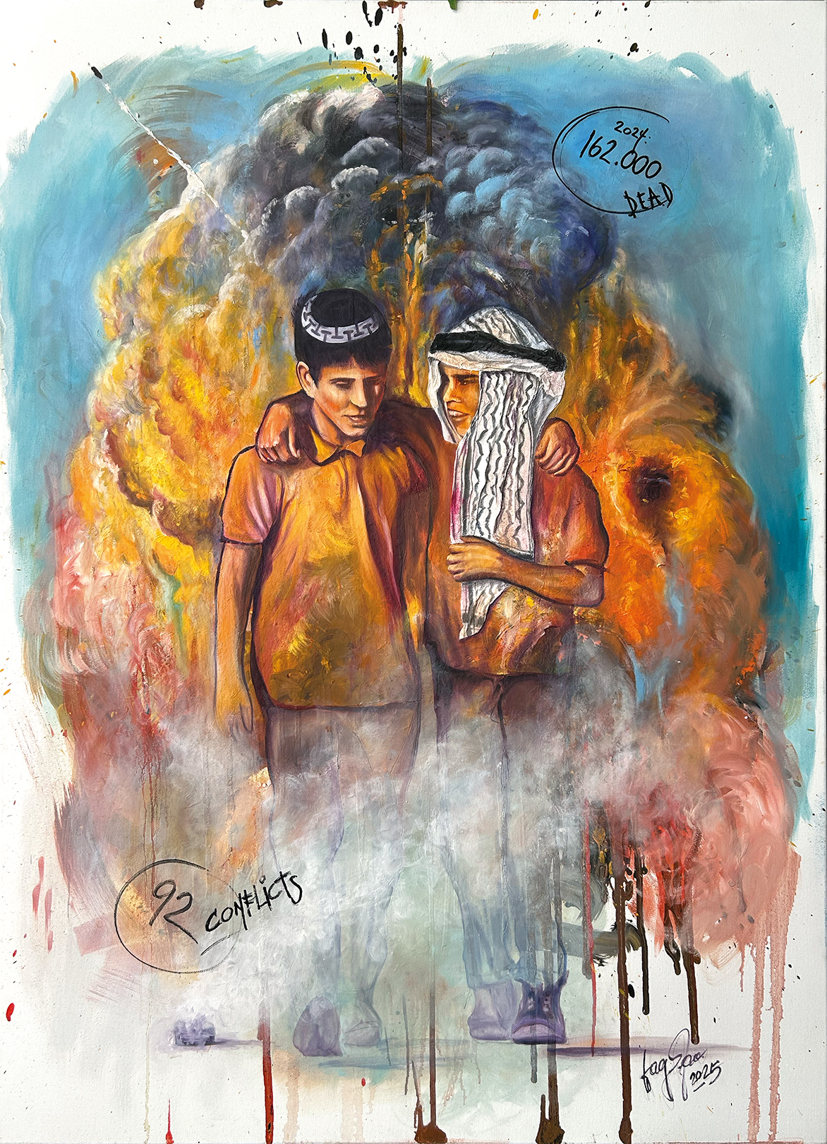 Das Werk spielt mit der Bildsprache von Aktivismus,